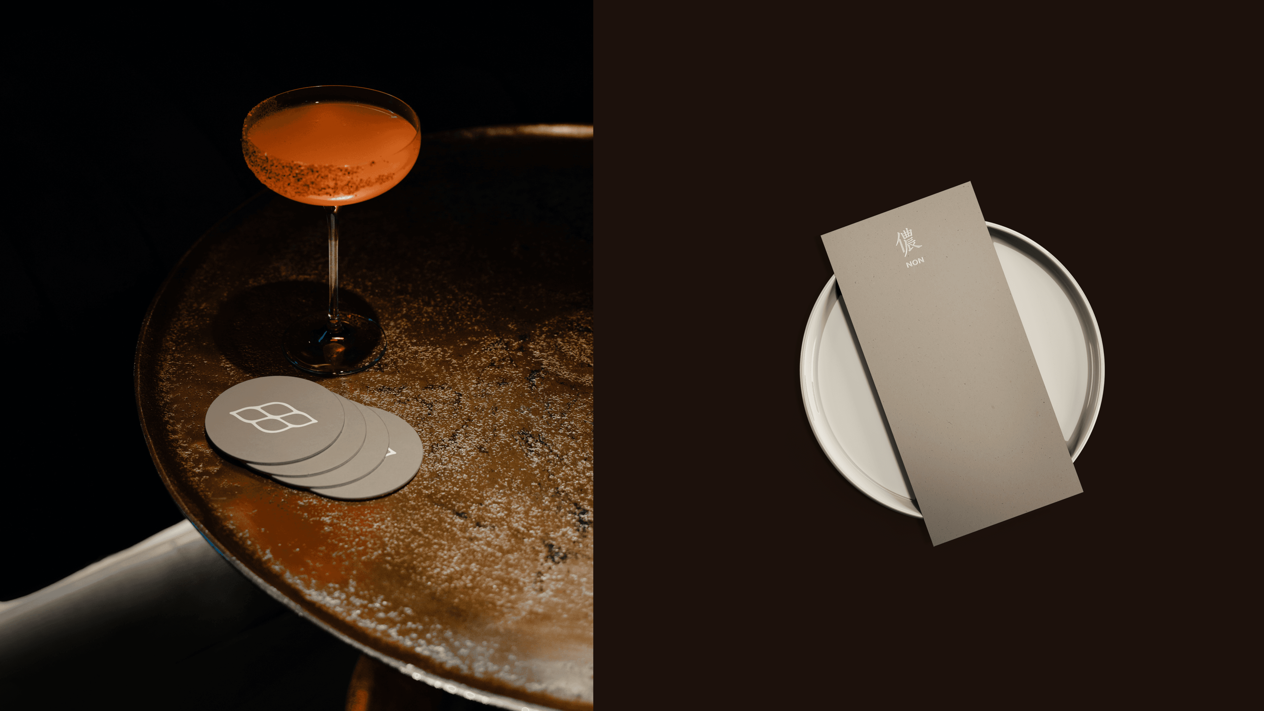 The brand identity reflects this balance through a typography-led visual language. Instead of overt symbolism, subtle line rhythm and structural restraint suggest the presence of fish and the sea in a measured, almost implicit way. Warm neutral tones anchor the system across space and materials, allowing the identity to remain calm, grounded, and quietly distinctive. Together, the visual elements establish a brand presence that feels composed and enduring—one that mirrors the restaurant’s approach to flavour, craft, and cultural continuity.